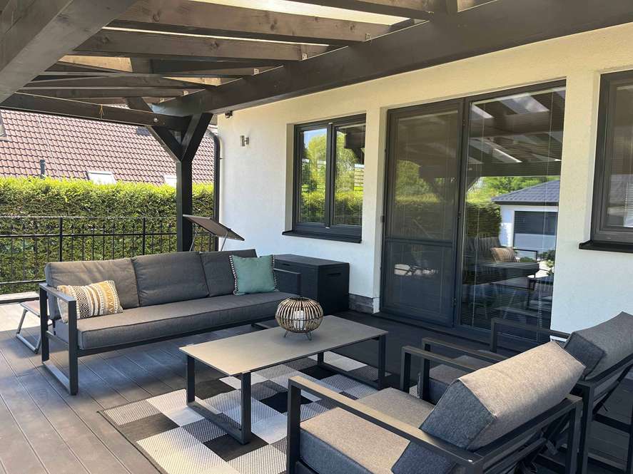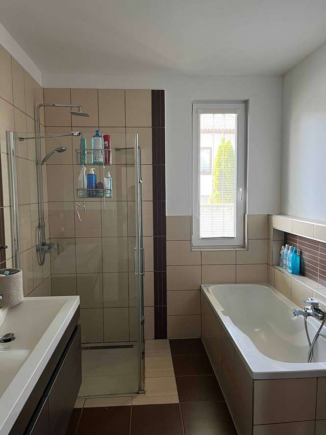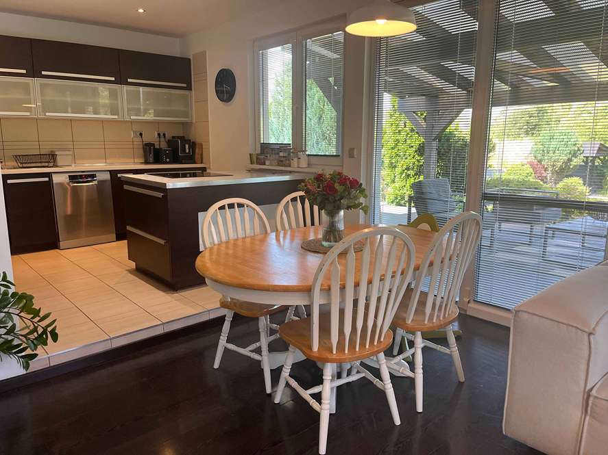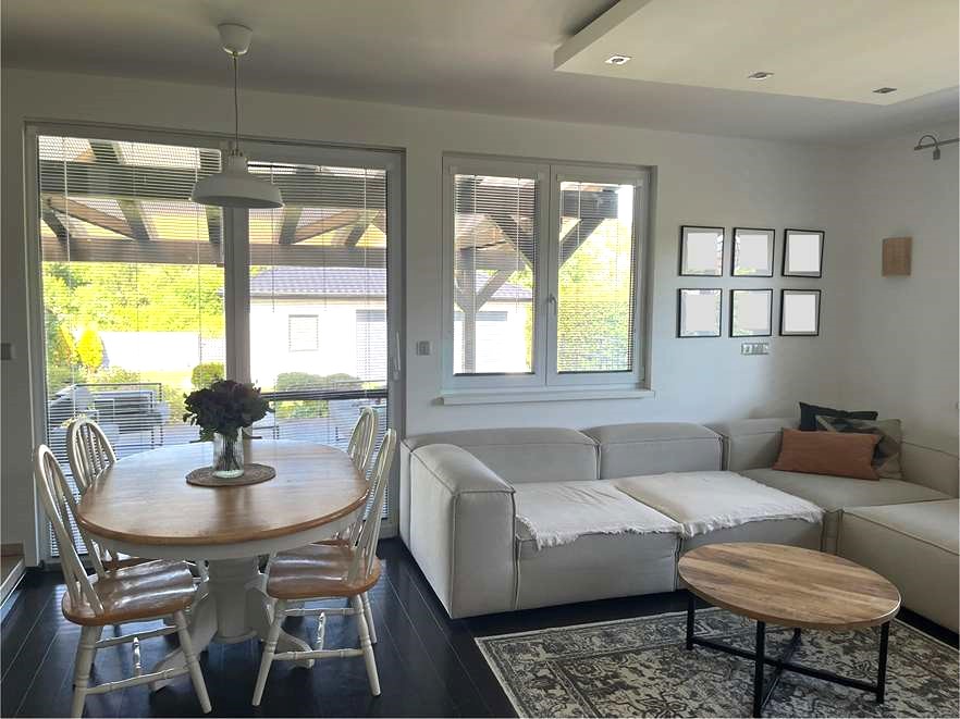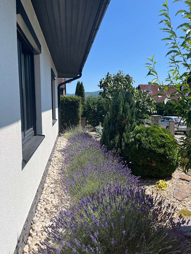 4-izbový rodinný dom vo Zvolenskej Slatine – pokojná lokalita, veľký pozemok JMB Reality ponúka na predaj montovaný rodinný dom typu bungalov s dvoj garážou, altánkom a studňou v obci Zvolenská Slatina o výmere 118 m2 zastavanej plochy. RD sa nachádza v pokojnej a veľmi príjemnej lokalite rodinných domov, bez priemyslu, alebo iných rušivých prvkov. Dom stojí na slnečnom rovinatom pozemku o výmere 866 m2. Dom je jednopodlažný, pozostáva zo zádveria, chodby, kuchyne spojenej s obývacou izbou v ktorej sa nachádza krb, spálne a dvoch detských izieb. 120 litrový bojler na ohrev vody a kotol na elektrické kúrenie sa nachádzajú v technickej miestnosti (inštalované v r 2023). RD sa vykuruje tepelným čerpadlom o výkone 8 kW inštalovaným v roku 2023. Dom má funkčné 2 nezávislé spôsoby vykurovania. Vykurovanie podlahové. Pri vchode do domu sa nachádza samostatné WC. Na chodbe pri izbách sa nachádza kúpeľňa s vaňou, sprchovacím kútom a ďalším WC. Celková podlahová plocha domu je 102,37 m2. Za presklenou stenou obývacej izby sa nachádza zastrešená terasa o výmere cca 36 m2, ktorá je prirodzeným pokračovaním vnútornej obytnej plochy a príjemne ju rozširuje do záhrady s dekoratívnymi drevinami a výhľadom na prekrásnu okolitú prírodu. Z ulice sa na pozemok vchádza malou osobnou bránkou, alebo automatickou bránou pre motorové vozidlá. Plocha od brány až po dvoj garáž je vyložená zámkovou dlažbou. Výmera dlažby cca 200 m2, okrem 2 parkovacích miest v garáži s elektrickými bránami je možné ďalšie 2 autá parkovať na prístupovej zámkovej dlažbe. Stavba dvoj garáže má výmeru 62 m2 a okrem parkovacích miest sa v nej nachádzajú ďalšie dve miestnosti využiteľné ako dielnička, sklad..... V Jednej z miestností sa nachádza studňa neobmedzený zdroj vody na pestovanie, umytie auta, alebo pre bazén. Dom je napojený na verejný vodovod aj kanalizáciu. Na ulici je rozvod plynu, ten nie je privedený do domu. Okrem už spomínaných stavieb sa na pozemku nachádza altánok cca 10 m2. Celý pozemok je oplotený a súčasne bočné strany od susedov sú oddelené drevinami poskytujúcimi súkromie domova. S rodinným domom kupujete všetku infraštruktúru potrebnú pre komfortné pohodlné bývanie v tichej a bezpečnej lokalite len cca 12 km od okresného mesta Zvolen a 37 km od Banskej Bystrice. Výborné miesto pre život, home office prácu podporuje aj internet o rýchlosti 200 Mb/s. Z pozemku sa dá odísť na výlet do prírody, alebo len tak na prechádzku zadnou bránkou do „územia nikoho. Tešíme sa na Váš záujem. Energetický certifikát zatiaľ nie je vystavený. Do kúpnej ceny je zahrnutá aj odmena realitnej kancelárie. Nehnuteľnosť je vedená pod evidenčným číslom: 3830 Všetky podrobné informácie ako aj obhliadku nehnuteľnosti zabezpečuje Ján Bušfy. Kontakt: 0917 416 820 (nekontaktovať mailom)