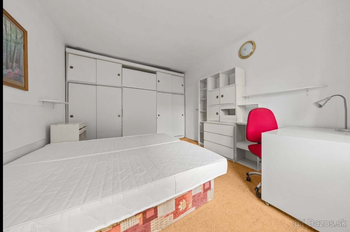 3-izbový byt Pluhova Bratislava – skvelá lokalita Ponúkam na predaj priestranný 3-izbový byt, ideálny pre rodinu alebo ako investícia na prenájom. Dispozícia: 3 samostatné izby, kuchyňa, kúpeľňa, WC, špajza, balkón, vysoké stropy, drevene parkety Výmera: 90 m² z toho balkón 2,5 m² a pivnica 5 m² Poschodie: 2./3 Stav: staršia čiastočná rekonštrukcia – plastové okná, kuchynská linka, kupeľka, wc Orientácia: slnečný, tichý byt, SV, JV, Z K bytu prislúcha pivnica Bytový dom: Tehlový dom, bez výťahu, upravené spoločné priestory. Lokalita: Vyhľadávaná a pokojná časť mesta s kompletnou občianskou vybavenosťou – školy, škôlky, obchody, MHD, zeleň, Kuchajda, OC VIVO, parkovanie pri dome. Cena: 297 000 €