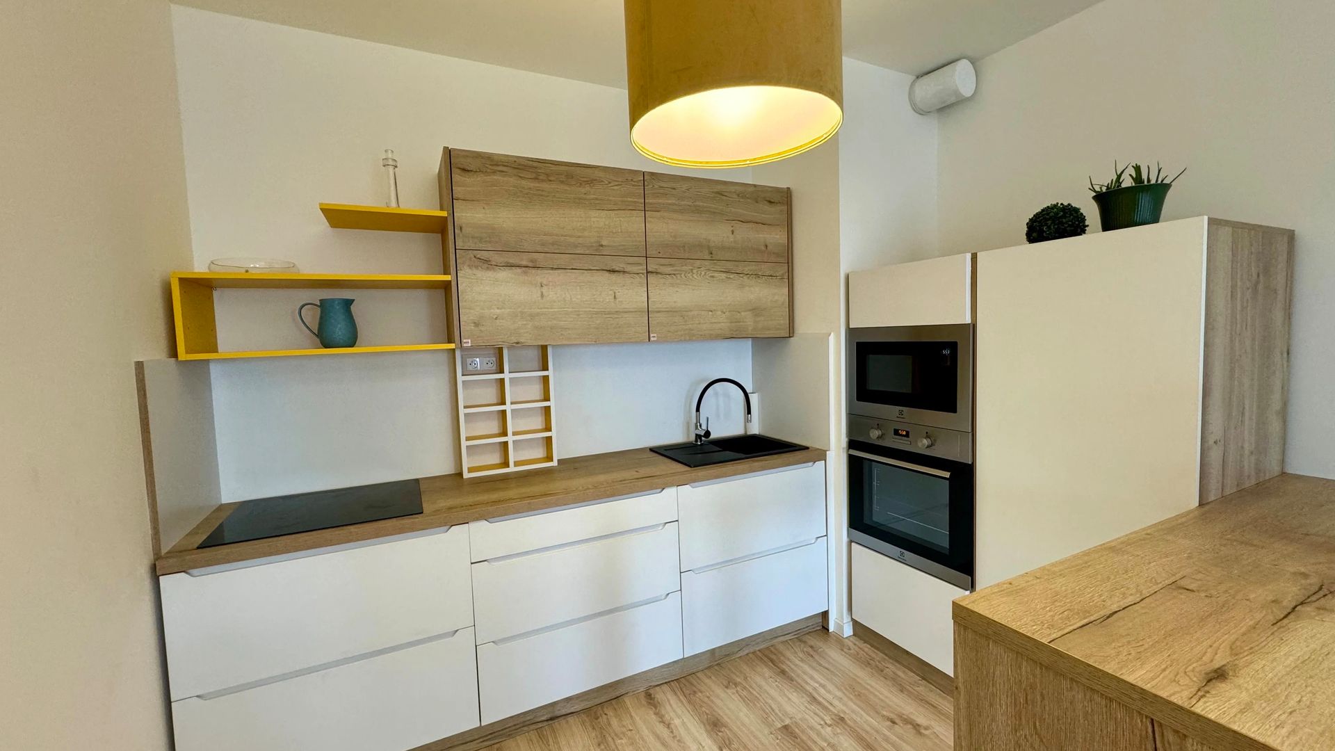 Nadštandardný 2-izbový byt s balkónom a parkovaním – Slnečnice POP, Petržalka Lokalita: Labutia ulica, Bratislava – Petržalka (okres Bratislava V) Cena: 650 € / mesiac + 200 € energie Parkovanie: 50 € / mesiac K dispozícii: ihneď Ponúkame na prenájom nadštandardný 2-izbový byt v projekte Slnečnice POP, v bytovom dome T2 (stredný), skolaudovanom minulý rok. Byt je orientovaný na juh a nachádza sa na 5. poschodí zo 7. Základné informácie Celková výmera: 54,5 m² byt: 50 m² balkón: 4,5 m² Novostavba nájomník – zariadenie je ako nové Klimatizácia Dispozícia vstupná hala kúpeľňa s vaňou a WC spálňa obývacia izba prepojená s kuchyňou a jedálenskou časťou balkón so vstupom z obývacej izby Vybavenie Byt sa prenajíma kompletne zariadený: úložné priestory na mieru (2× rolldoor v spálni, vstavané skrine v chodbe a obývačke) kuchynská linka na mieru so spotrebičmi: elektrická varná doska elektrická rúra chladnička s mrazničkou mikrovlnná rúra kompletné kuchynské vybavenie vrátane riadu kúpeľňa: vaňa, práčka, kúpeľňový nábytok, umývadlo, zrkadlo Lokalita Projekt Slnečnice POP ponúka kompletnú občiansku vybavenosť: potraviny: Billa, Kraj, Terno, Tesco Express, Lidl reštaurácie, kaviarne, služby výborná dostupnosť MHD aj autom konečná zastávka električky v pešej dostupnosti – centrum mesta do 10 minút Platobné podmienky 1× mesačné nájomné vopred depozit provízia RK energie, internet a TV: 200 € / mesiac parkovacie státie: 50 € / mesiac ???? Ponuka je sprostredkovaná realitnou kanceláriou. ???? Kontakt: 0911 495 385 (T-Mobile) – možný WhatsApp / Viber